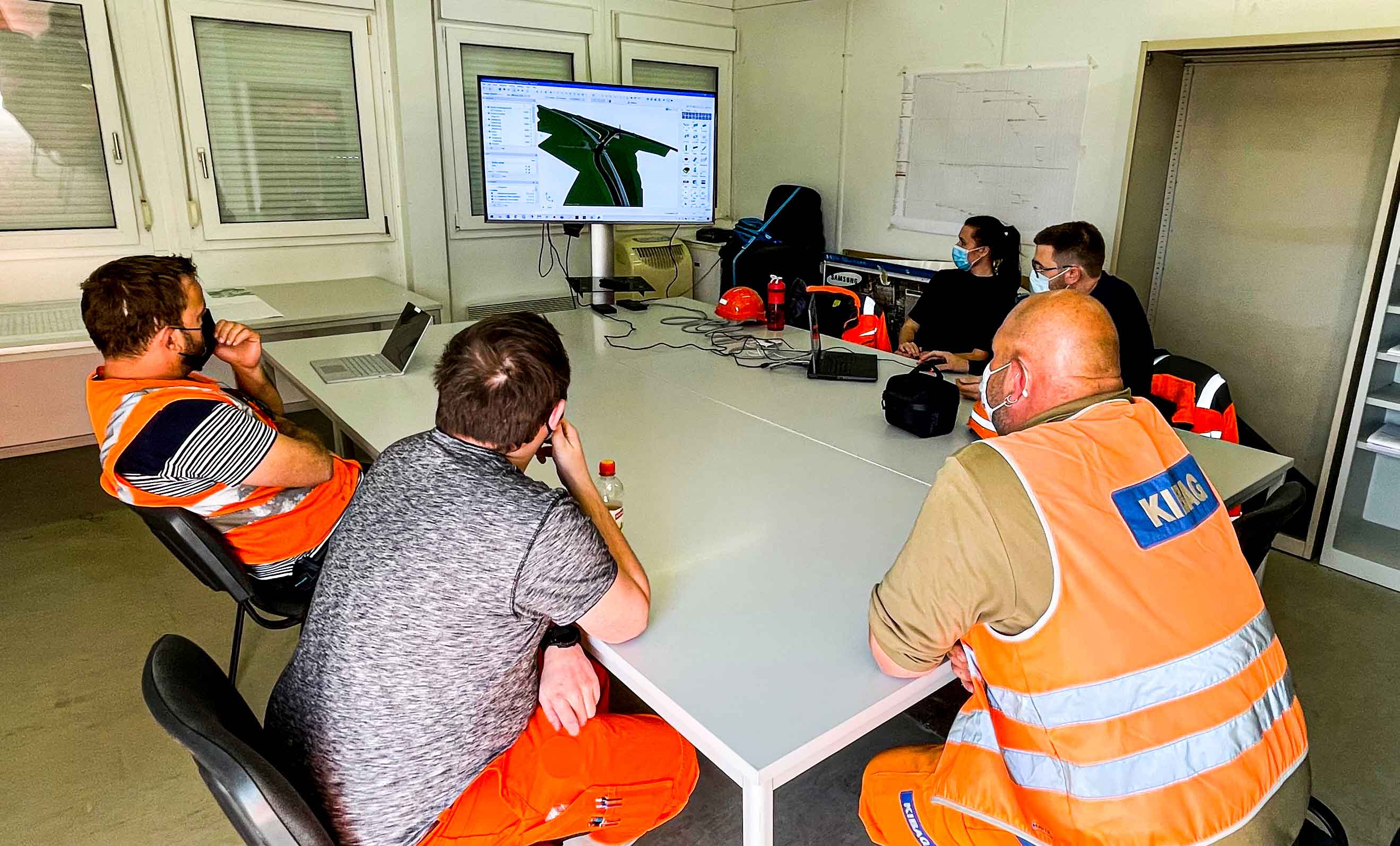 By laying the track, the earth movements were recorded in the cross sections as BIM elements. These were then integrated into the BIM 3D model and digitally forwarded to the contractor for the machines on site (BIM to Field).
